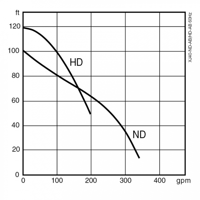 The submersible drainage pump XJ 40 is ideal for pumping water and dirty water mixed with light abrasives. Pumps with built in AquaTronic unit will always have correct direction of impeller rotation, ensuring peak performance and reduced wear. 50 Hz: head max 34 meters, flow max 23 l/s. 60 Hz: head max 36 meters (118 feet), flow max 22 l/s (349 gpm).